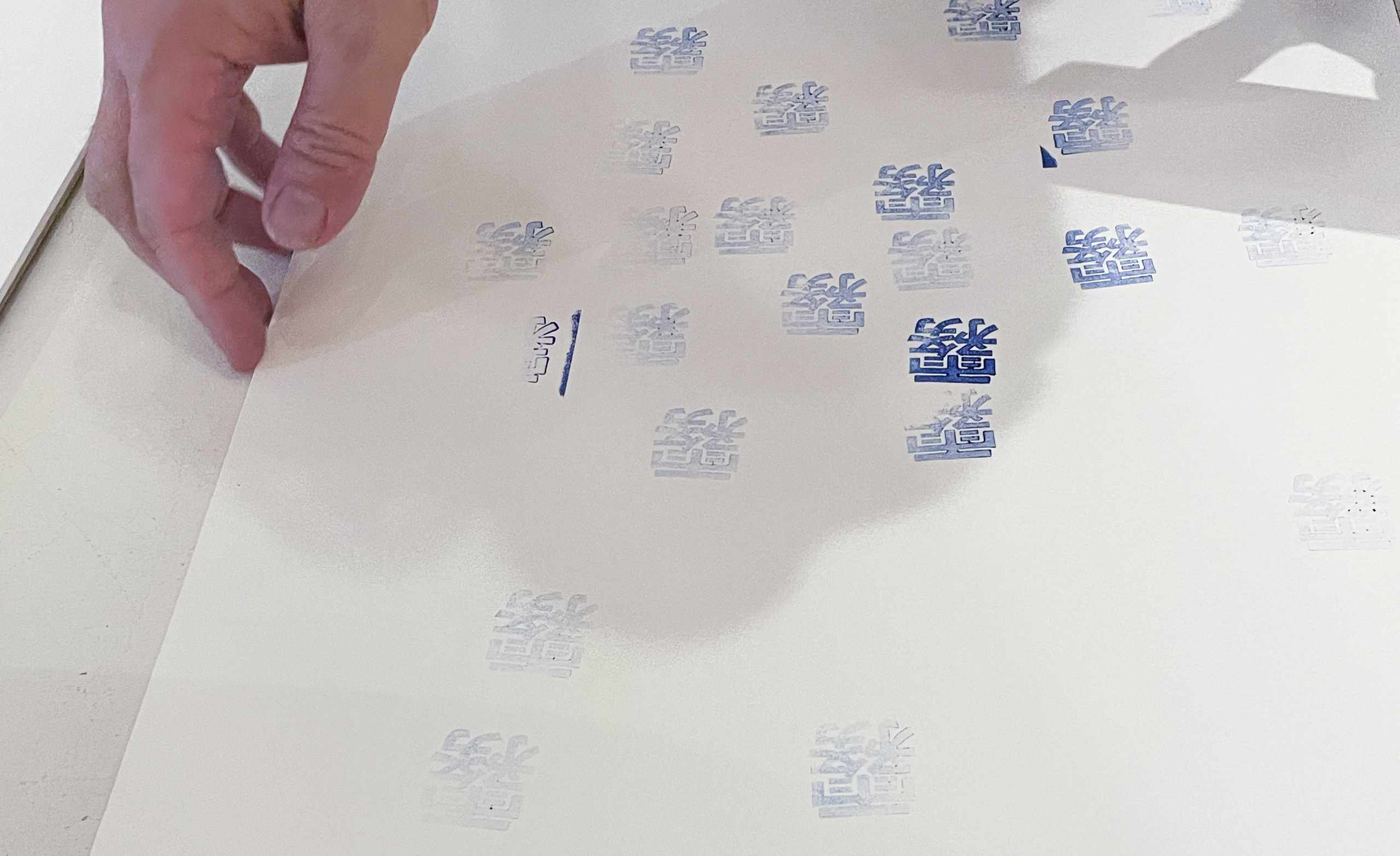 ワークショップでは、ホーヴィッツがロサンゼルスから持参した手作りのラバー・スタンプを用います。スタンプは、「水」のさまざまな状態を表す日本語がセレクトされています。例えば「川」「海」「雲」そして「あなた」。「あなた」の身体もまた、水の形の一つであるからです。このスタンプは、さまざまな国の言語を用いて作る視覚詩の作品シリーズの一つであり、参加者はスタンプを押すことで、自分だけのオリジナル作品を作り、そのまま持ち帰ることができます。
