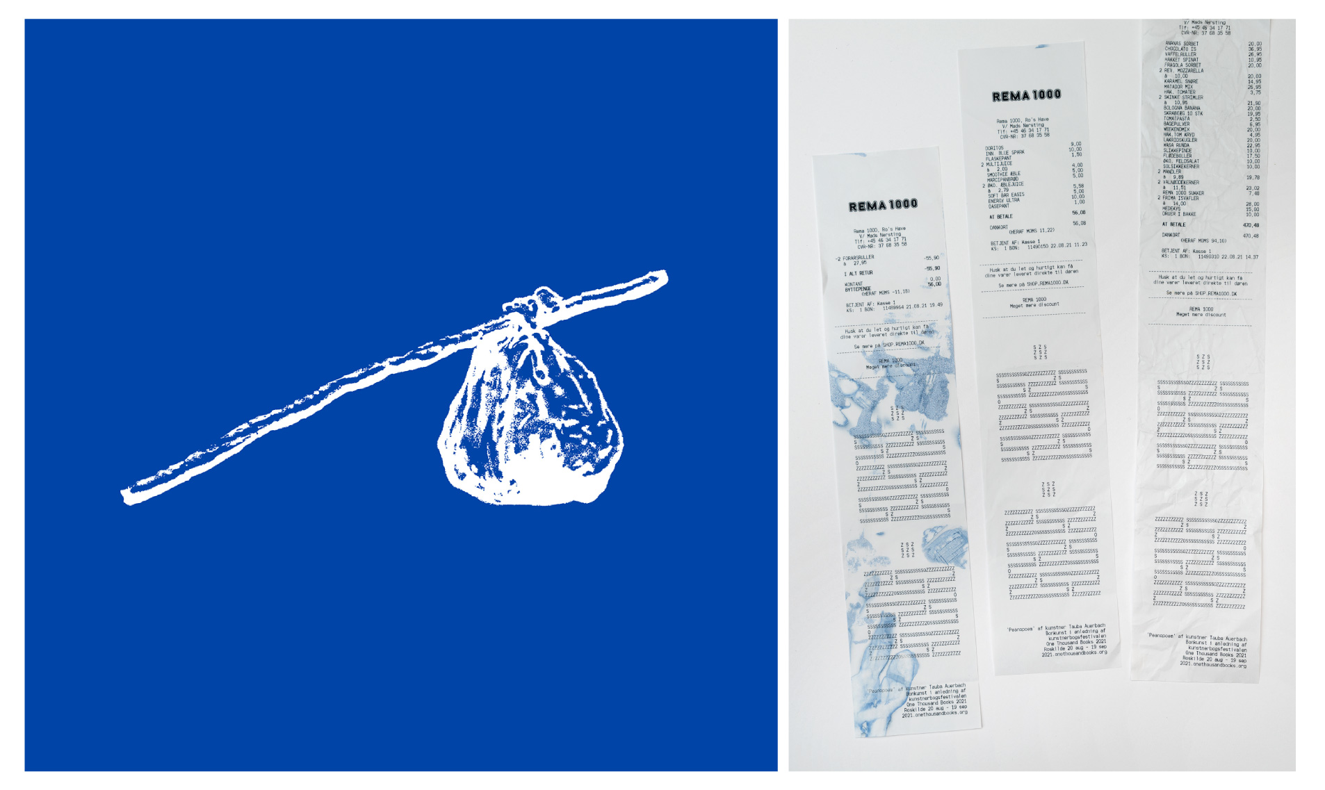 One Thousand Books will, from its base at O—Overgaden, hand out a map and compose a guided tour to a series of local, specialized bookshops. As a token of encouragement to visit your local bookshops, we made a small edition of bindles, consisting of a wooden branch and a piece of fabric, perfect for carrying a stack of books, and silkscreen printed with a mapping of the spaces for artists’ books near you.