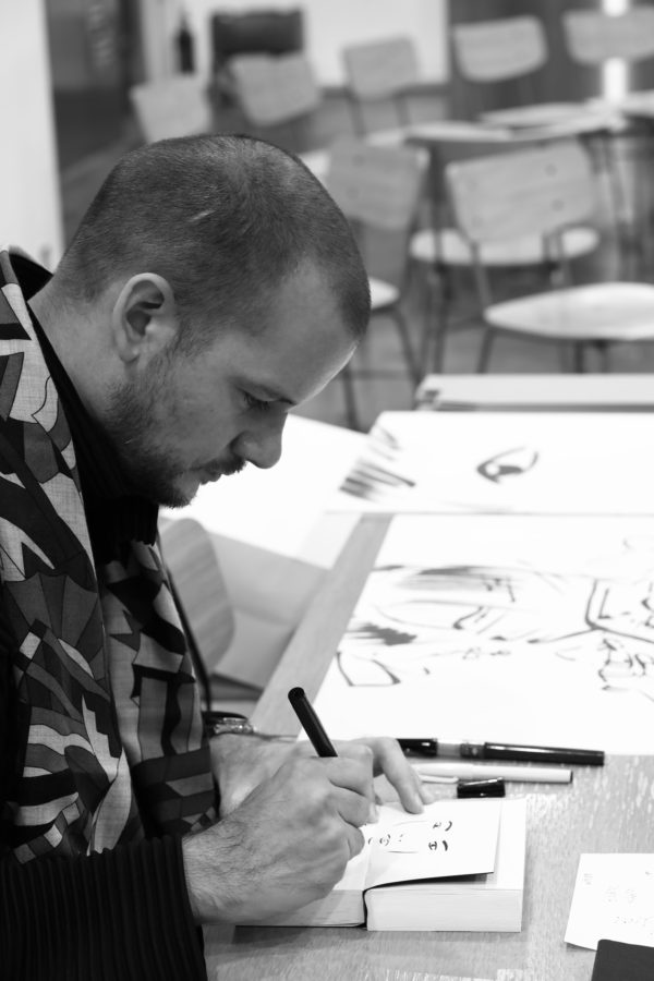 東京の地下鉄で出会った人々を描いた書籍「Tokyo Metro」の刊行を記念し、作家のJan Bajtlik(ヤン・バイトリク)が、ご購入いただいた書籍にドローイングを行います。似顔絵や動物など、好きなものをリクエストいただけます。
