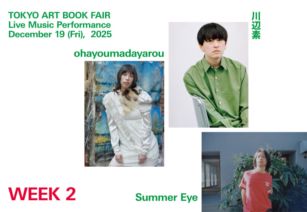 TOKYO ART BOOK FAIR 2025では、2週目の初日12月19日(金)に吹き抜けの屋外広場〈サンクンラウンジ〉にて注目のミュージシャンたちによるライブイベントを開催します!