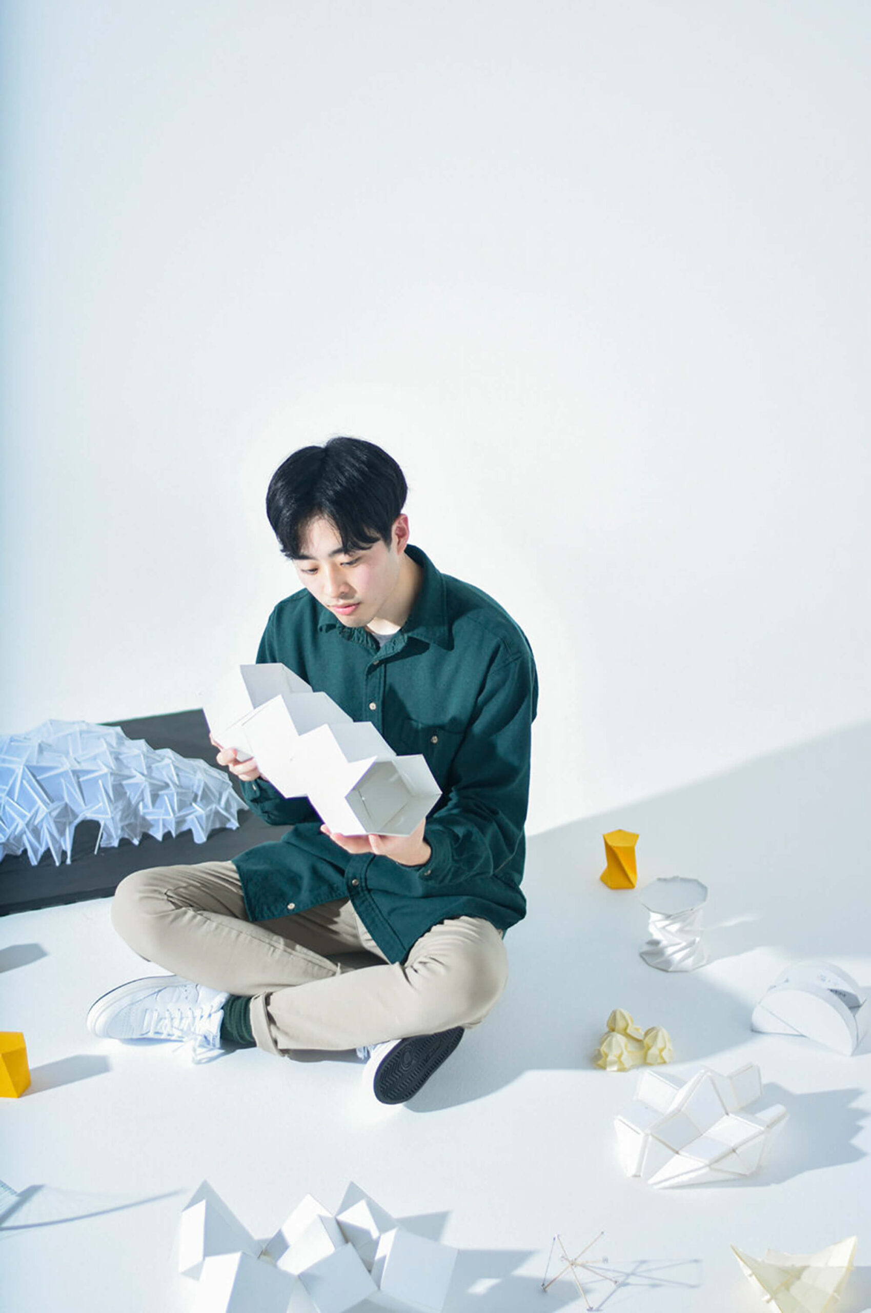 He actively engages in interdisciplinary collaborations, such as providing folding patterns for Comme des Garçons noir kei ninomiya. In 2023, he was selected for Forbes JAPAN’s “30 UNDER 30”, which recognizes young innovators shaping the future.