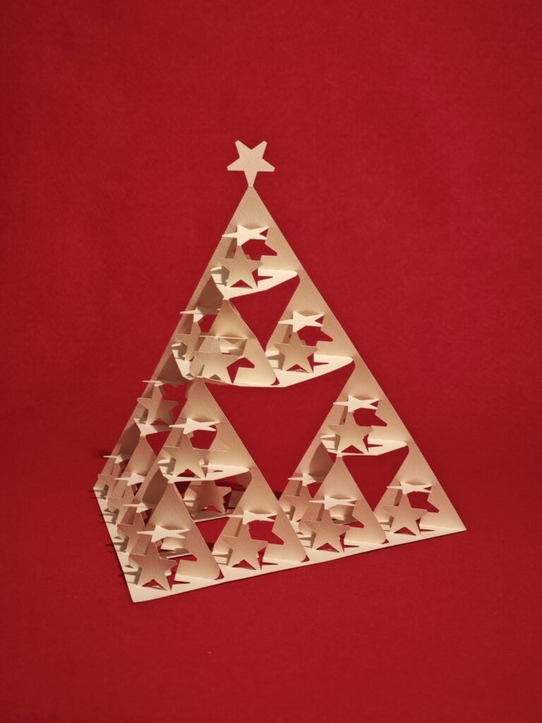 The shape of this tree is inspired by the tetrahedral kite conceived about 130 years ago by Alexander Graham Bell, the inventor of the telephone. It’s a fascinating and unique design, where small triangles come together to form a larger structure.