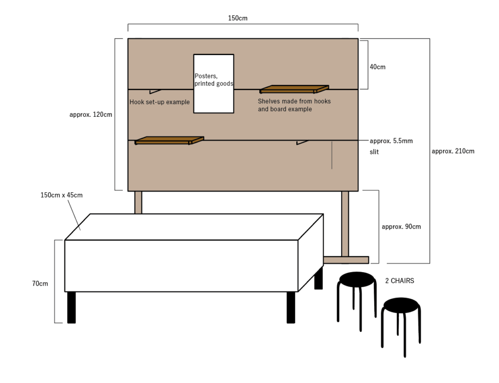 Booth without Wallspace Details *Table (90 x 45 cm)
