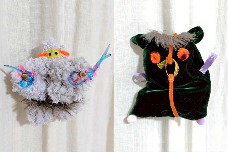 みんなのプレゼントを狙ってやってくる! “怖い?”“可愛い?”“面白い?”ぬいぐるみを布や様々なパーツを使ってつくります。