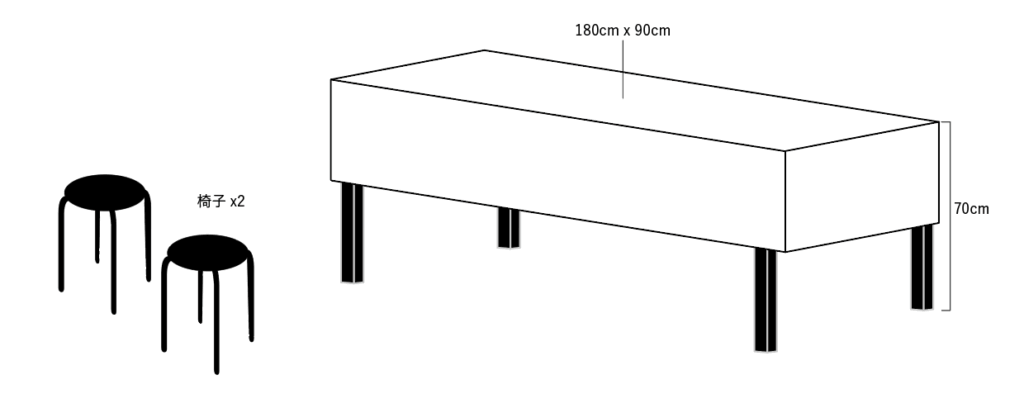 ・椅子:1ブースにつき2脚