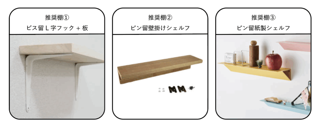 (2) 石膏ボード用壁掛けシェルフ:https://www.monotaro.com/p/7825/8451/